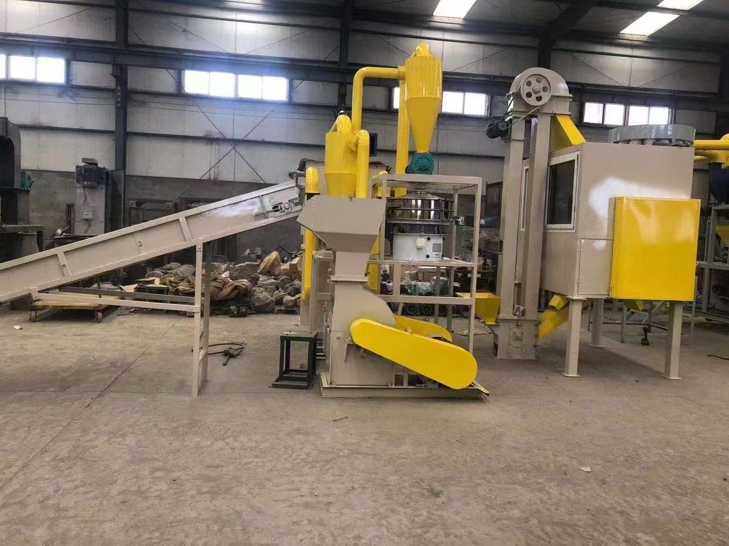 铝塑分离机用于废旧铝塑材料的回收,可将铝和塑料分离,铝塑分离机采用破碎、研磨、分离、除尘工艺流程,实现铝金属和塑料粉末同时完全分离回收。回收的铝粉可直接销售给铝回收厂和烟花爆竹厂,PVC粉也可作为再生料在市场上销售。