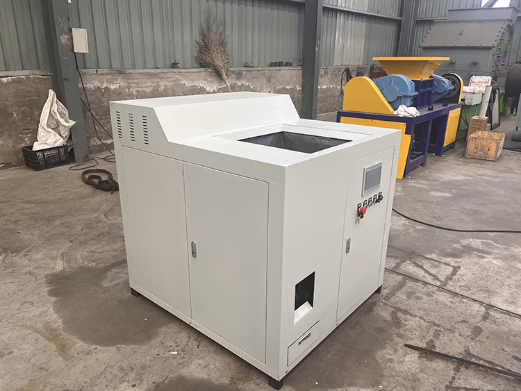 1) 进料:金属废料(如废铁、废钢、铜、铝等)通过进料系统送入储料仓。进料系统可以是手动的,也可以是自动的,自动系统通常采用传送带或进料斗。