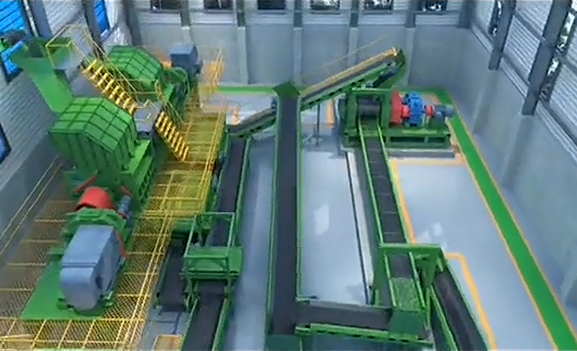 3.撕碎机:将轮胎撕碎成薄膜(50mm-150mm)